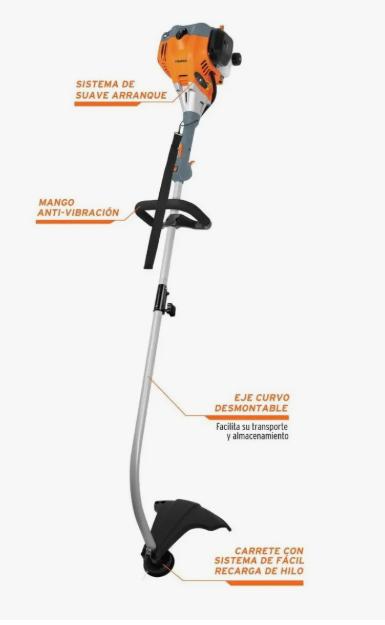 - Eje curvo ideal para jardines residenciales, más ligero y fácil de maniobrar