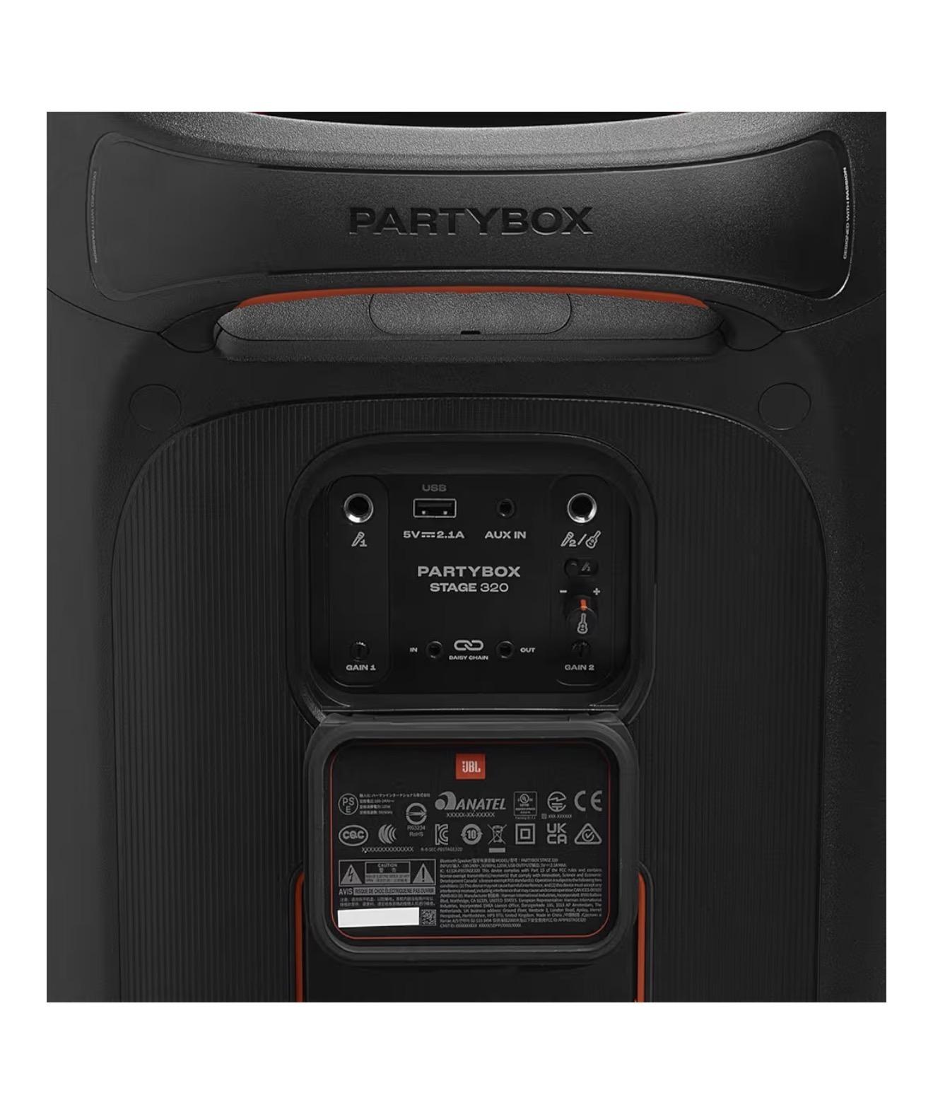 Conexión Bluetooth 5.4, puerto USB-A, conector de audio de 3.5mm y entrada de audio de 6.3mm para micrófono y guitarra. Empareja dos PartyBox y haz un par estéreo para un escenario sonoro más amplio. Para tus eventos más grandes, conecta varios PartyBoxes compatibles con JBL Auracast de forma inalámbrica.