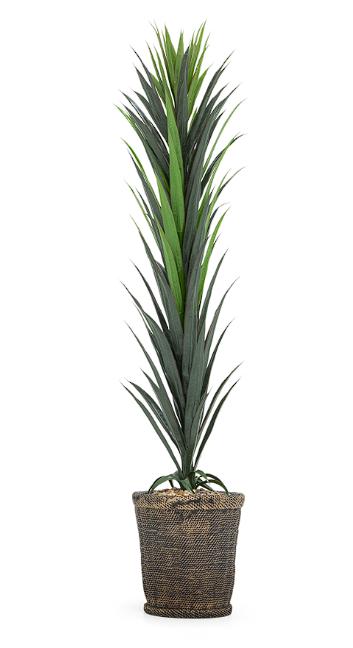Esta imitación realista de la variedad dracaena, de un vibrante color verde, mide 150 cm de altura y no requiere cuidados. La base, de 30 cm, está hecha de cemento y plástico, dándole estabilidad y un aspecto natural.