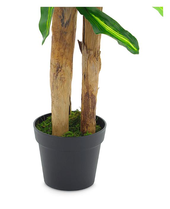 Se trata de un aditamento de diseño frondoso, el cual presenta una altura aproximada entre 160 y 180 cm, ya que puedes acomodar sus amplias hojas como prefieras. Además, viene con una base redonda que puedes colocar en donde quieras.