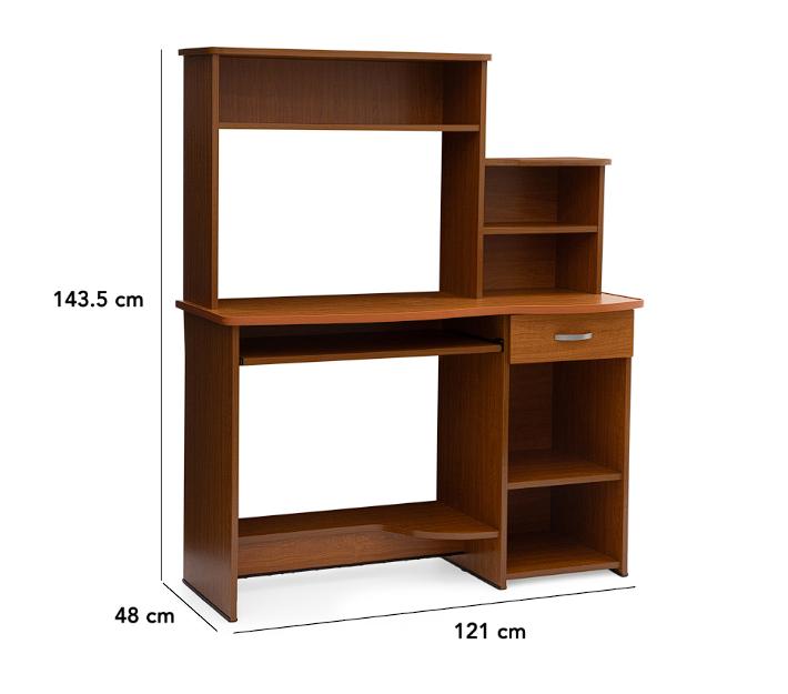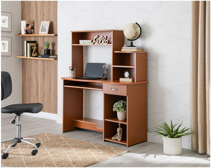Crea la oficina de ensueño con este escritorio Kansas II en color peral. Su diseño versátil te permite disfrutar de la variedad de estantes, entrepaños, compartimentos y cajón, para que tus artículos y herramientas de trabajo, estén a tu alcance y distribuidos de la mejor manera, para mantener el orden de tu oficina personal.