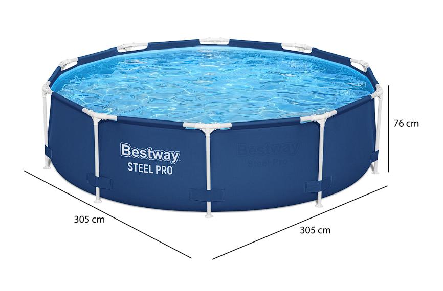 Disfruta del rico clima de verano en familia, refrescándote en la alberca Steel Pro de la marca Bestway.