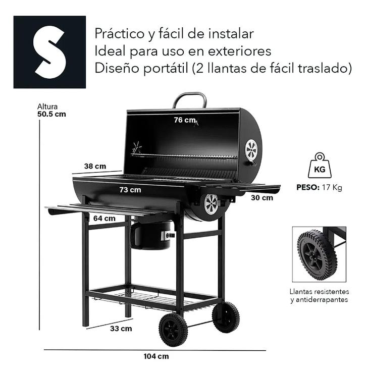 Medidas totales de la parrilla: 76cm x 94cm x 33cm.