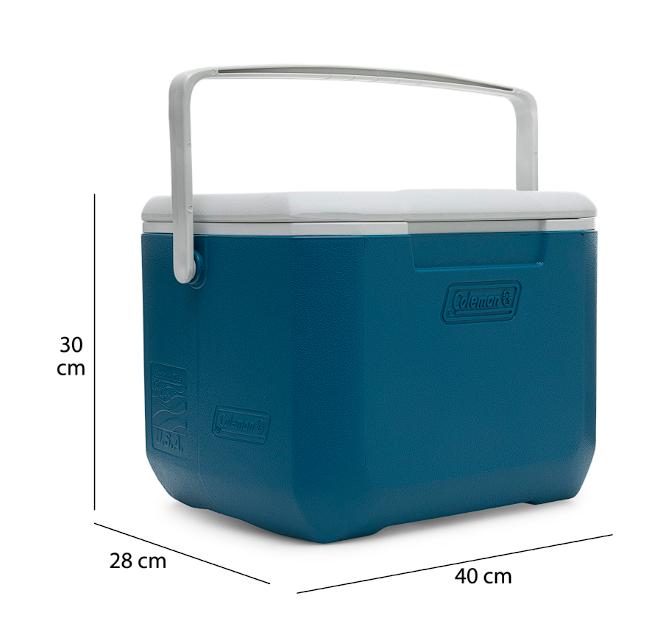 Especificaciones de la HIelera: Coleman con capacidad de 15 litros o 16 qt, lo que equivale a 22 latas.
