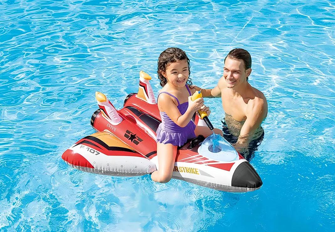 La figura hinchable dispone de 3 cámaras de aire y lleva incorporadas 2 resistentes asas para una mayor sujeción y estabilidad en el agua.