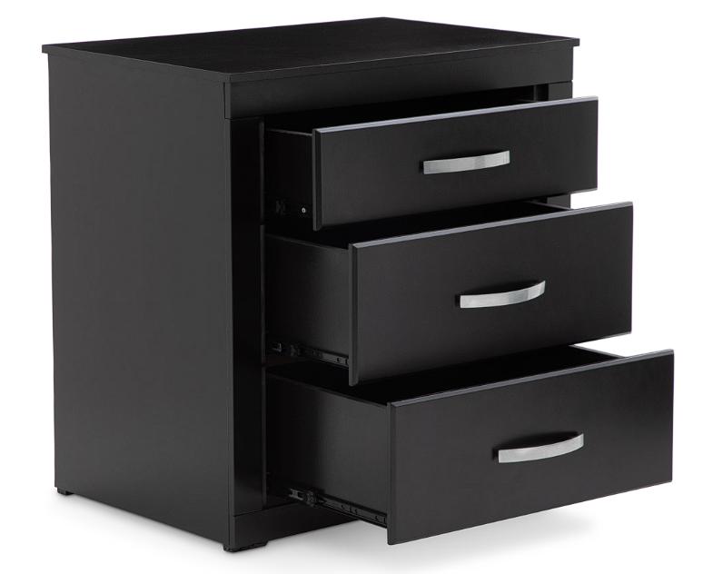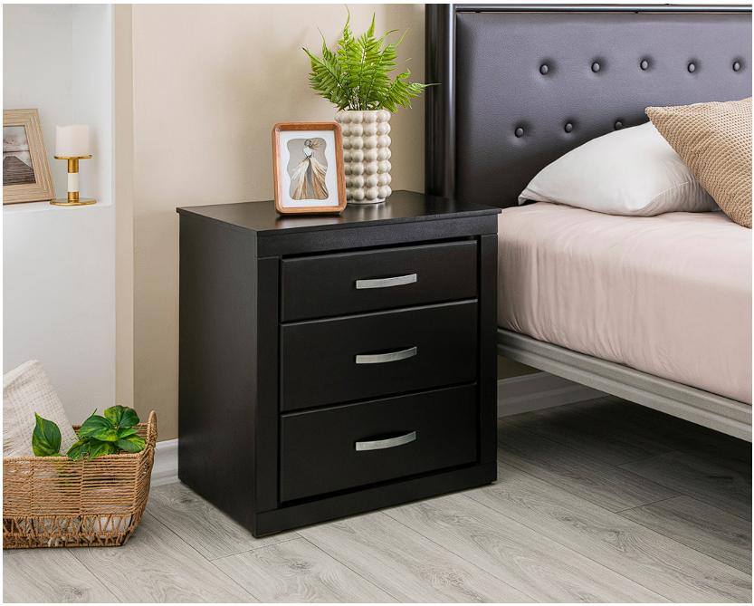 Presenta acabado en poliuretano, además cuenta con correderas y herrajes metálicos. Sus tres cajones te ofrecen el espacio ideal para guardar ropa o artículos personales.