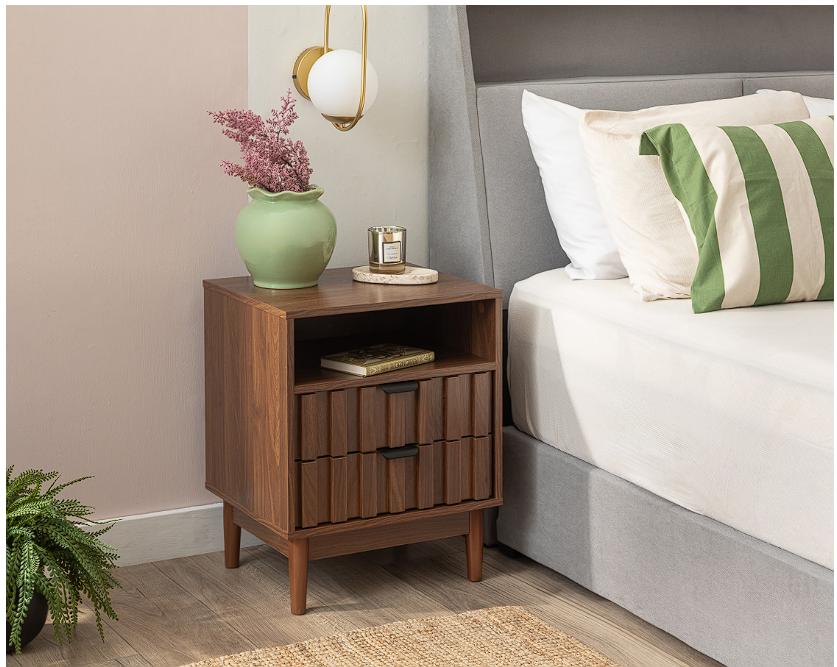Es el equilibrio perfecto entre estética y funcionalidad. Su estructura de madera industrializada con acabado en melamina garantiza alta resistencia. Integra dos cajones organizadores y patas robustas de madera de pino para mayor durabilidad.