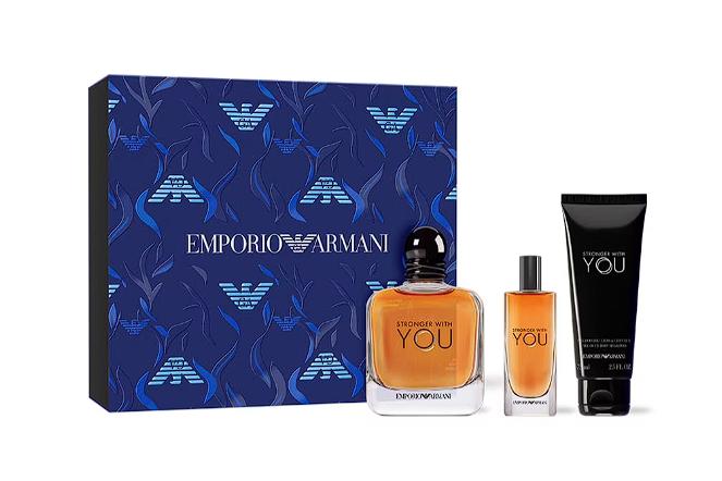 Estuche de regalo Emporio Armani Stronger With You Eau de Toilette . Este set exclusivo de Giorgio Armani incluye todo lo necesario para cuidar y perfumar la piel con estilo, ideal para un regalo sofisticado y con significado. STRONGER WITH YOU vive en el presente y sorprende con su originalidad, como las notas de salida de la fragancia: una castaña glaseada que se combina con un acorde especiado compuesto de cardamomo, pimienta rosa y hojas de violeta. El corazón aromático compuesto de lavanda y salvia tierna transmite una elegancia segura mezclada con la despreocupación propia de la juventud. La nota de fondo magnética, una ahumada Vanilla Jungle Essence™, subraya las cualidades inconfundiblemente sexys y sensuales de la fragancia.