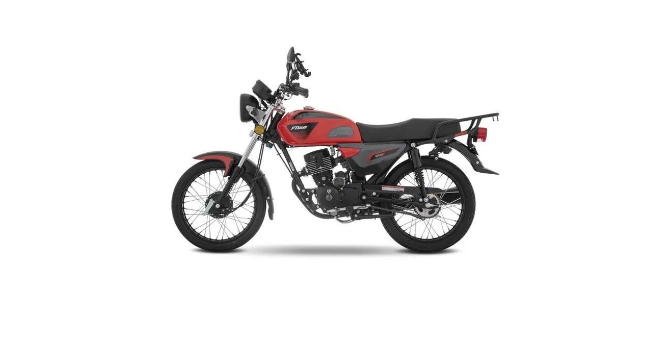 La moto FT150 tiene un motor de 4 tiempos monocilíndrico con una potencia máxima de 11.5 Hp @ 8500 RPM, una cilindrada de 149 CC y un torque máximo de 11 N-m @ 7500 RPM.