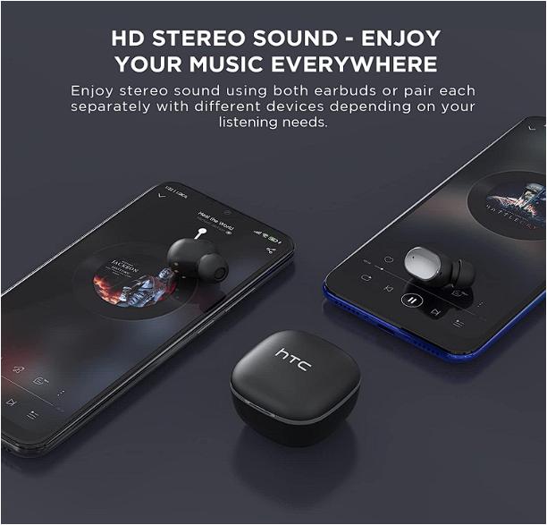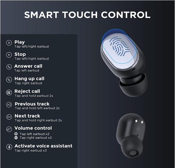 Puede tocar HTC audifonos inalambricos directamente para hacerse realidad controlar la música y llamar. reproducir, pausar, siguiente canción, última canción y Toque los auriculares izquierdos dos veces para aumentar el volumen, toque los auriculares derechos dos veces para disminuir el volumen. Cuando entre una llamada, toque los auriculares una vez para responder la llamada, toque los auriculares dos veces, cuelgue.