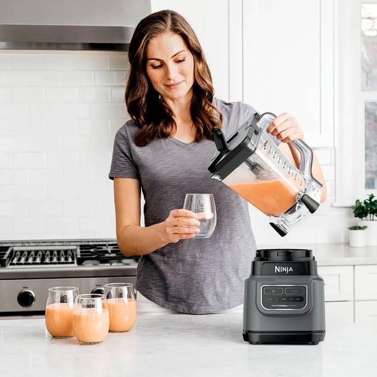Con 1000 vatios de potencia profesional y cuchillas Total Crushing, la licuadora Ninja Classic tritura hielo en smoothies suaves y bebidas congeladas que se vierten fácilmente por el pico vertedor de la jarra de tamaño completo. Controla cada mezcla con los ajustes bajo, medio, alto y pulso. Equipada con una jarra de 72 onzas