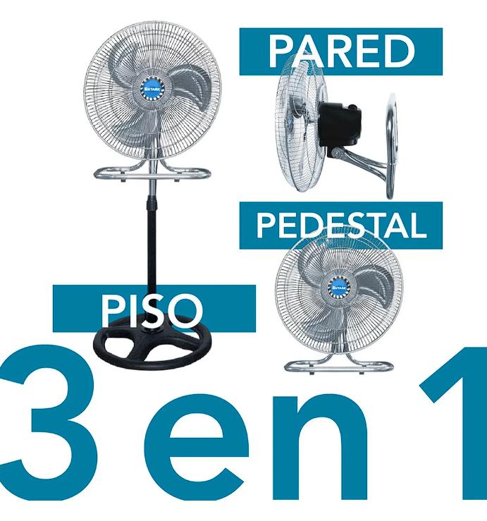 Experimenta la máxima versatilidad con nuestro ventilador de 18 pulgadas, diseñado para adaptarse a tus necesidades en cualquier entorno. Este ventilador 3 en 1 ofrece la flexibilidad de ser montado como pedestal, fijado en la pared o simplemente colocado en el piso, brindando una circulación de aire eficiente y personalizada para tu espacio.