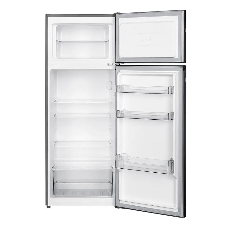 Este modelo cuenta con un congelador independiente en la parte superior, con una capacidad de 1.3 pies cúbicos y estantes de cristal templado, que garantizan durabilidad y fácil limpieza.