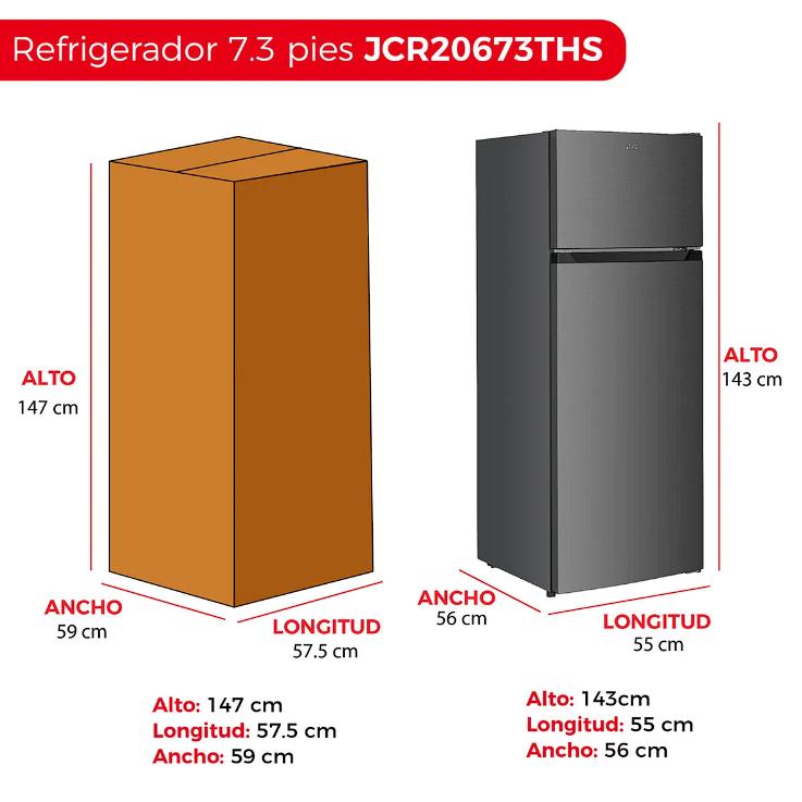 El Refrigerador Defrost JVC Mod. JCR20673THS es la solución ideal para quienes buscan funcionalidad y estilo en su cocina. Con una capacidad de 7.3 pies cúbicos (206 litros), este refrigerador ofrece un amplio espacio para almacenar todos tus alimentos y bebidas. Su diseño en color plateado se adapta perfectamente a cualquier decoración, brindando un toque moderno y elegante.