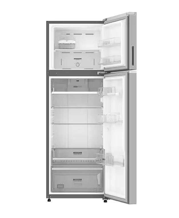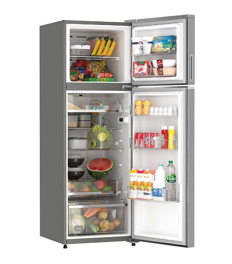 Refrigerador Top Mount 395 L / 14 pies cúbicos color gris acero con tecnología Xpert Energy Saver #1 en ahorro y #1 en manejo de espacio con Xpert Spaces con 50% más espacio para tus frutas y verduras, puerta reversible y luz LED para una mayor visibilidad, con Portable Twist-Ice, sistema de deshielo Auto Defrost, sistema de evaporador sencillo, cubierta de cajón para legumbres. Además 3 parrillas de cristal templado, cajón con control de humedad para frutas y verduras con cubierta de cristal templado, cajón para frutas y verduras con cubierta, cajón Cold Space para carnes frías y cajón para almacenar todos tus alimentos, incluye un anaquel con capacidad de galón y 2 fijos