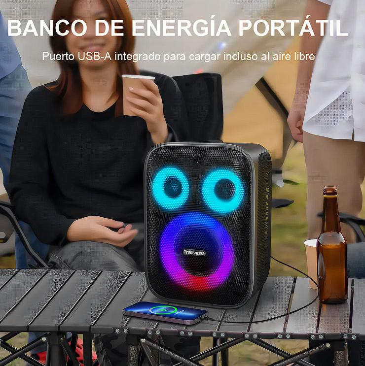 Disfruta de una calidad de sonido superior y una conectividad versátil con el Halo 200. Su función de reproducción dual te permite cambiar fácilmente entre modo de enchufe CA y batería, para adaptarse a cualquier situación. En cuanto a la energía, el Halo 200 tiene todo resuelto: disfruta de hasta 18 horas de reproducción continua, lo que lo hace perfecto para fiestas nocturnas o actividades al aire libre.