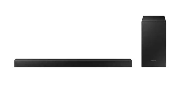 La barra de sonido Samsung HW-T420/ZX 2.1 ofrece una experiencia de audio envolvente con 150W de potencia total y un subwoofer inalámbrico de 6.5 pulgadas.Con tecnología Dolby Digital 2.1 y varios modos de sonido, como Surround Sound Expansion y Modo Juego, optimiza automáticamente el audio para diferentes tipos de contenido. Además, cuenta con conectividad Bluetooth para una fácil integración con otros dispositivos.