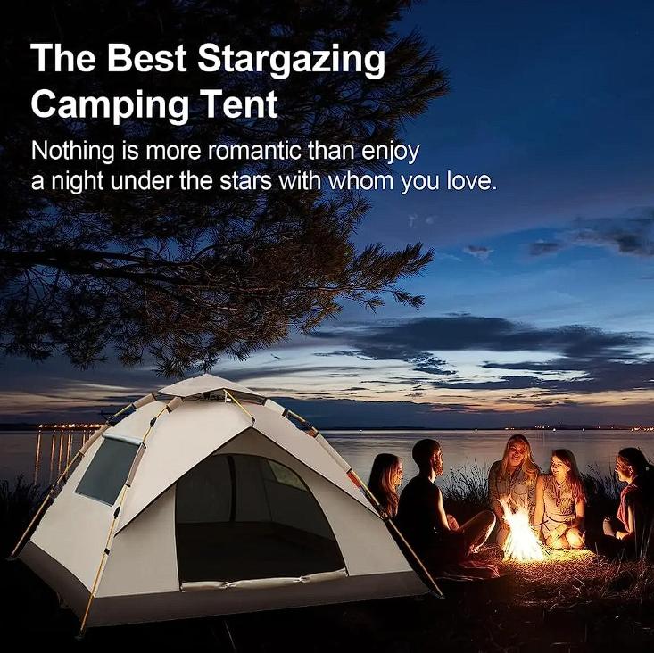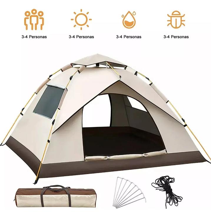 La tienda plegable para 3-4 personas tiene paredes y techo de malla para una buena ventilación. Esta tienda de campaña de exterior es un lugar cómodo para alojarse.