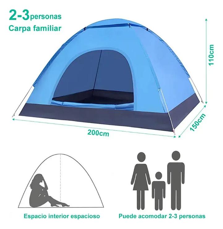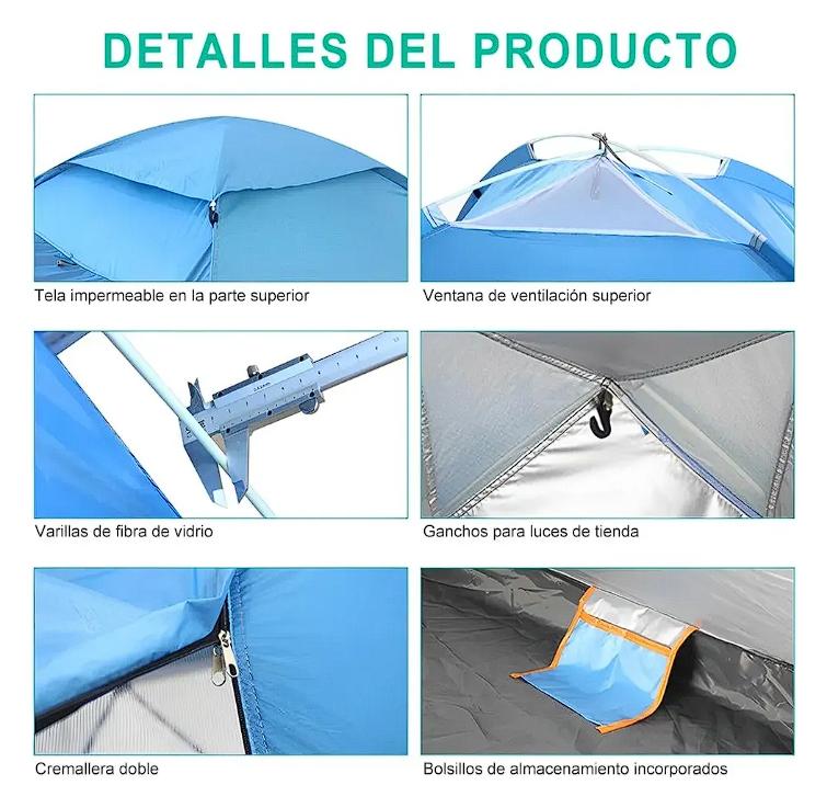 Diseño de doble puerta suficientemente espacioso: la tienda está diseñada con una puerta delantera y otra trasera. Podéis entrar y salir sin tener que arrastraros unos sobre otros. Podrás moverte libremente o colocar todo tipo de material de acampada. Dimensiones sin plegar: 200 x 150 x 110 cm. Tiene capacidad para 2 adultos y 1 niño que pueden entrar y salir libremente y sin molestias.