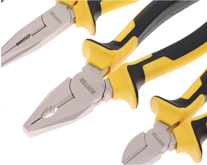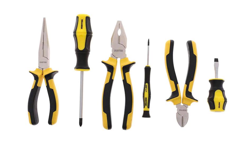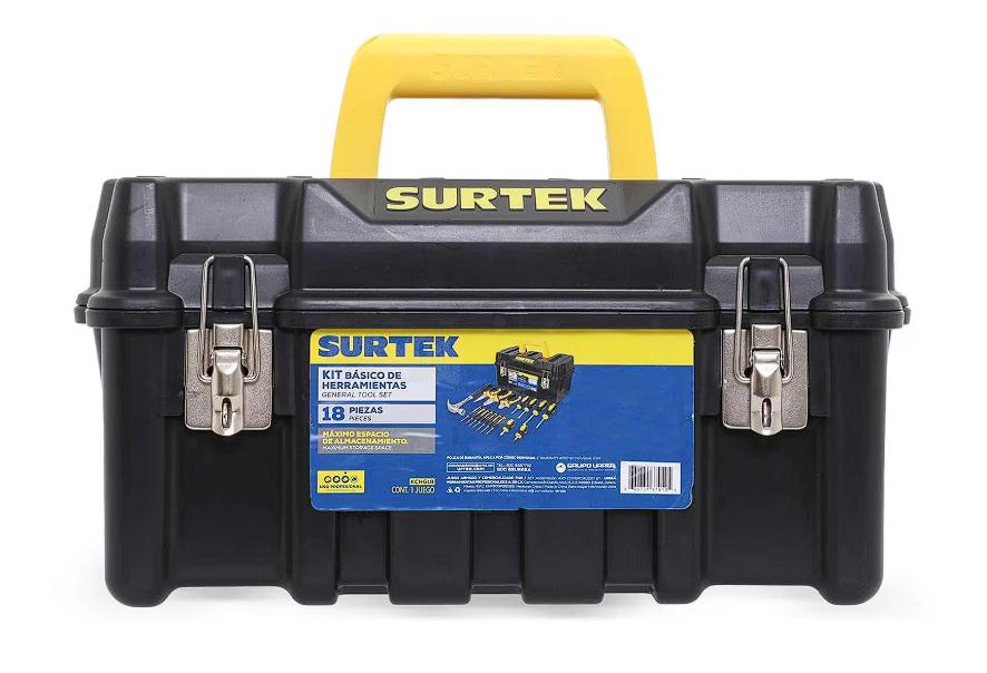 El kit incluye una caja de plástico que te facilita el almacenamiento y la transportación del martillo de uña curva incorporado en el set de herramientas. También vienen 3 pinzas estilo universal, de corte y pelacables, así como un juego de 13 destornilladores con puntas planas y de cruz.