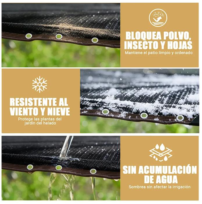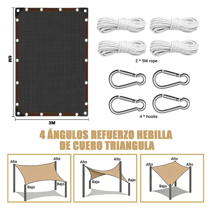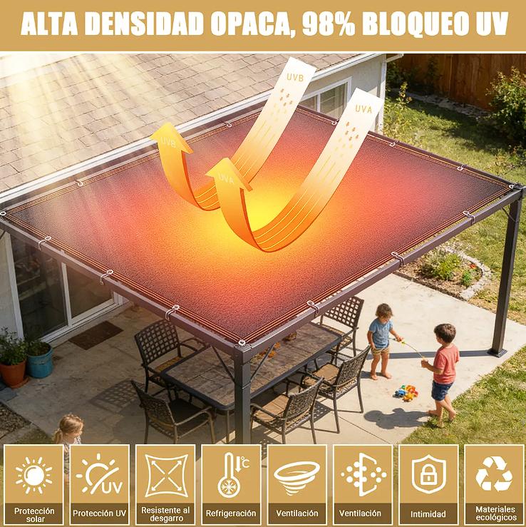 Nuestra Malla Sombra bloquea hasta el 95% de los rayos UV del sol, reduciendo el calor y la luz solar UV, especialmente en verano, protegiendo tu piel de daños. Las telas transpirables de la Malla Sombra permiten el paso del aire, proporcionando un espacio más cómodo y manteniéndote fresco en los días calurosos.