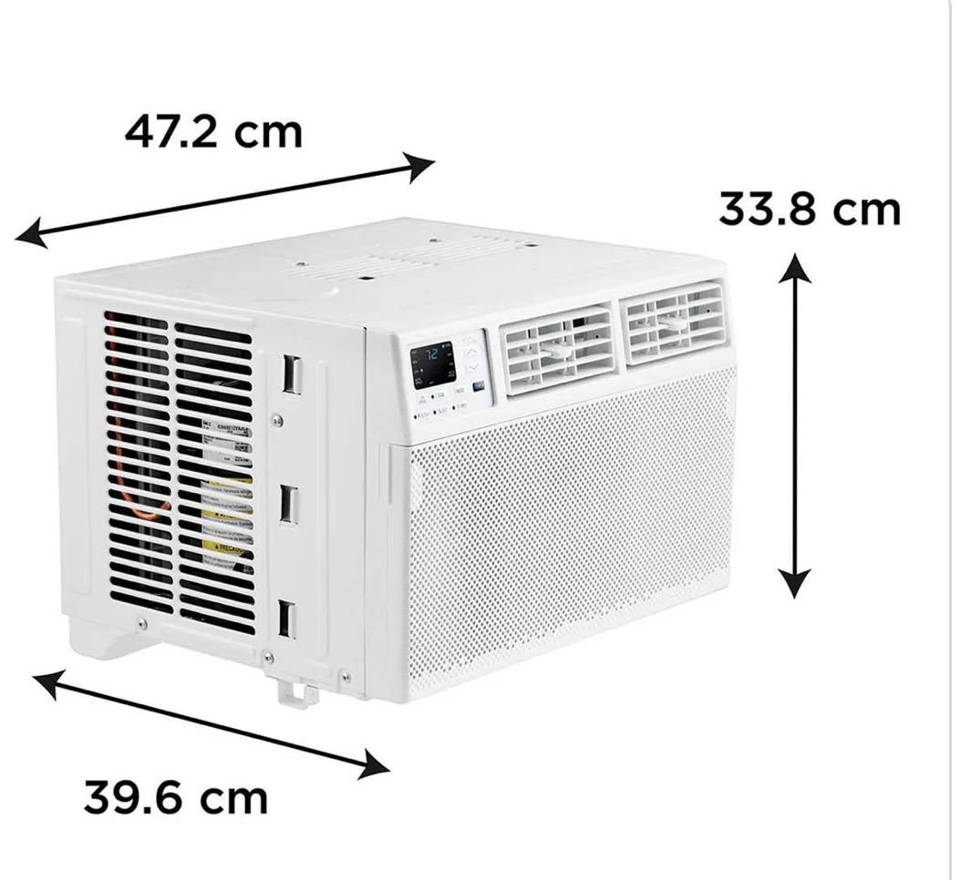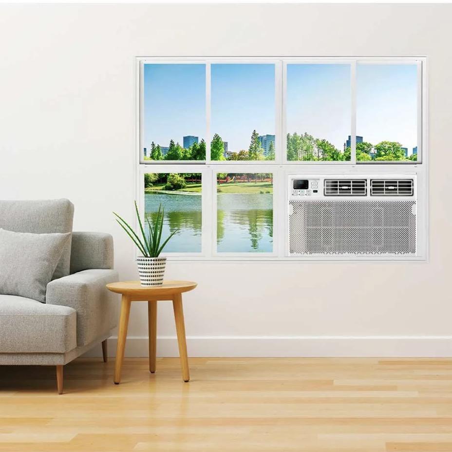 Aire acondicionado tipo Ventana On/off solo frío, refrigerante con capacidad de enfriamiento de 8,000 BTU, para operar a 110V/1F/60Hz, EER: 11.0, nivel de ruido; alta: 58, media: 56, baja: 53dBA, elegante acabado color blanco brilloso, moderno centro de mando de operación intuitiva, para enfriar espacios entre 11 y 16 m², incluye control remoto inalámbrico.