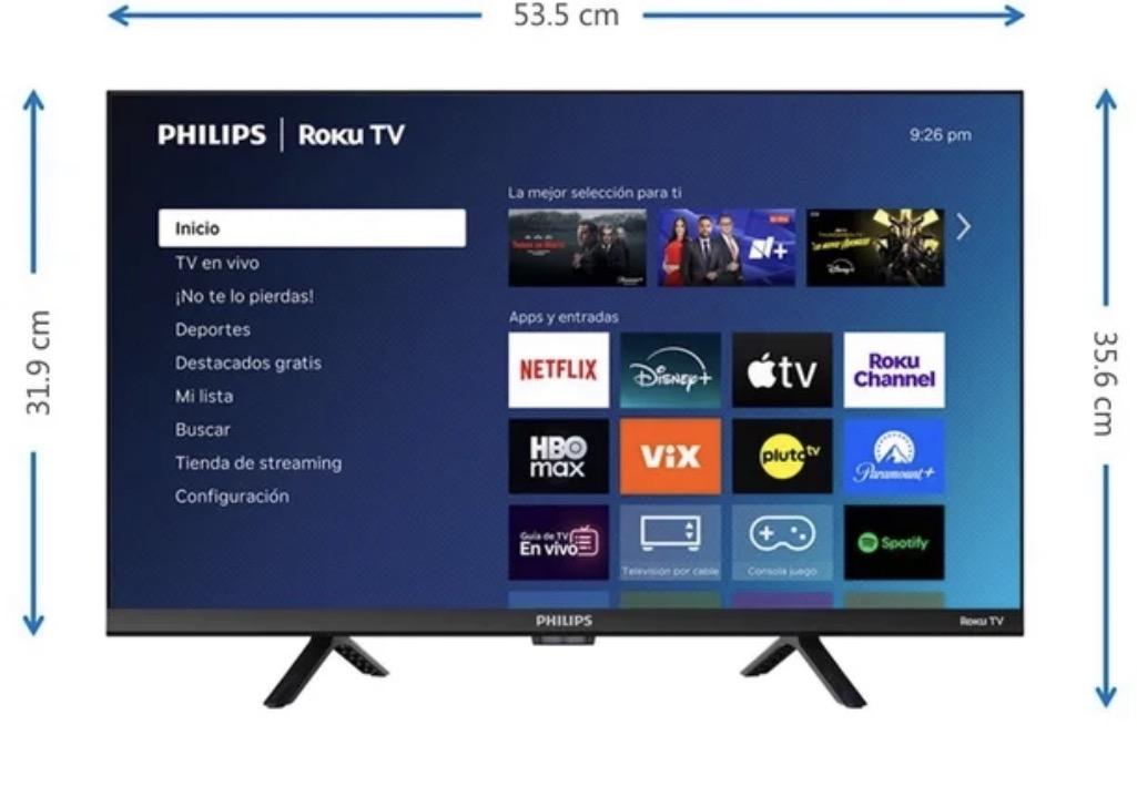 La Philips Roku TV de 24 pulgadas combina un diseño moderno sin bordes con una plataforma inteligente pensada para disfrutar contenido en cualquier habitación. Su pantalla LED con resolución HD (720p) ofrece imágenes nítidas y colores equilibrados, ideal para series, películas, deportes y entretenimiento diario.