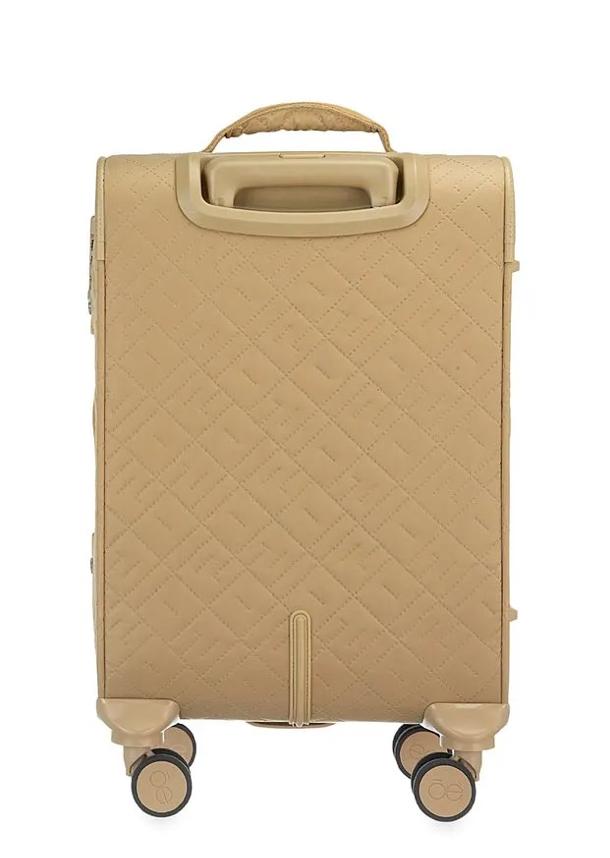 Equipaje vertical hecho con material textil. Cuenta con Cuenta con un ligero bastón de tres alturas. Tiene cuatro ruedas dobles y giratorias con movimiento 360°. Cosmetiquera impermeable.