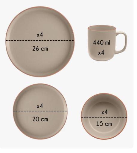 Descubre la combinación perfecta de elegancia y funcionalidad con esta vajilla de cerámica de 16 piezas, diseñada para el uso diario y ocasiones especiales. Su diseño minimalista y moderno con un sutil borde a contraste se integra a la perfección con cualquier estilo de cocina.