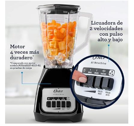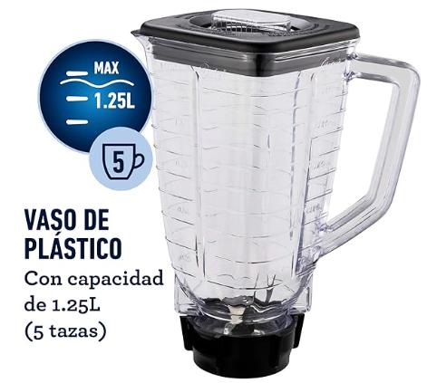 Vaso de plástico, que te permite procesar ingredientes hirviendo sin necesidad de esperar a que estos se enfríen, capacidad de 1.25 litros (5 tazas) para preparar desde sopas hasta jugos, salsas y bebidas con hielo