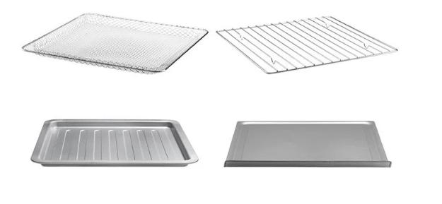 1 Horno tostador digital, 1Cesta para freír, 1 rejilla para el horno, 1 bandeja para hornear y 1b andeja para migajas.