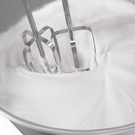 Recipiente giratorio 360°: Fabricado en acero inoxidable con capacidad de 4.4 litros, ideal para mezclas uniformes y sin grumos.