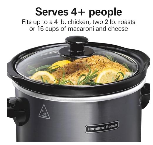 Sirve a más de 4 personas: la olla de cocción lenta de 4 cuartos de galón es compacta pero tiene un montón de espacio de cocción. Soporta hasta 4 libras. pollo, dos 2 libras. asados o 16 tazas de macarrones y queso.