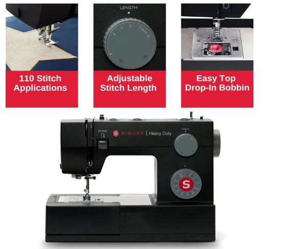 Componentes incluidos Los accesorios incluyen pie multiusos, pie con cierre, pie de ojal, pie de costura de botón, cepillo para polvo de desgarrador de costura/cepillo para polvo de pelusa, guía de acolchado, agujas, bocinas, destornillador, pasador de carrete auxiliar, fieltro de carrete y cubierta antipolvo de lados suaves.