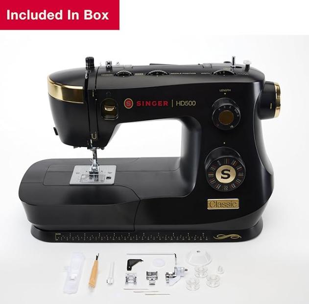 Motor más fuerte para telas pesadas: el SINGER HD500 Classic está equipado con un potente motor que ofrece un 50% más de potencia que los modelos estándar, lo que te permite coser fácilmente a través de telas pesadas como mezclilla, lona y varias capas. Este robusto motor garantiza costuras consistentes y una potencia de perforación superior, por lo que es ideal para una amplia variedad de proyectos de costura, desde prendas hasta decoración del hogar.
