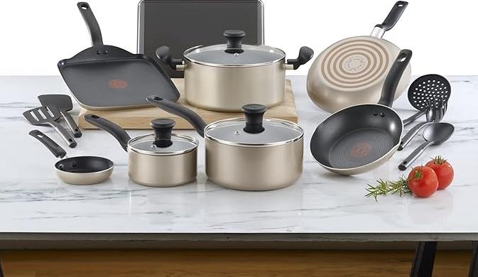 Batería de Cocina de 16 piezas T-fal Culinaire Champán con Antiadherente Proglide, B059SG64