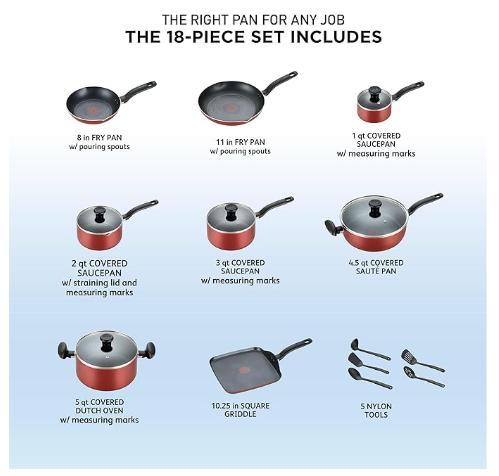 Batería de Cocina T-Fal B165SI64 color Rojo, 18 Piezas