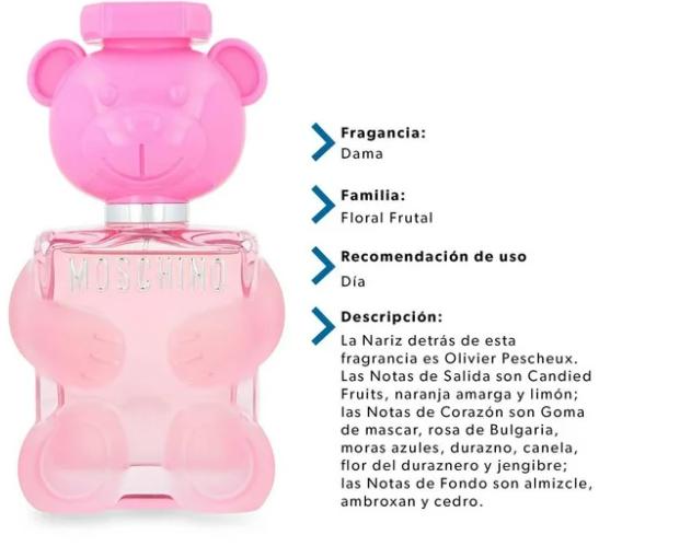 Moschino cuenta con un fresco y dulce aroma que lo convierte en tu mejor accesorio para acompañarte en eventos de día, además, su exclusiva botella está elaborada en vidrio transparente, con detalles color rosa y diseño de oso.