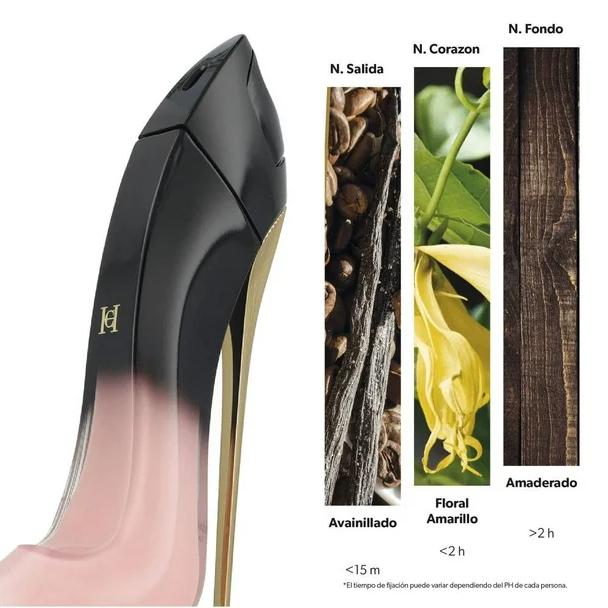 Es una interpretación sensual y más intensa del Good Girl Blush, presentada en un atractivo frasco con un reluciente talón dorado. La última incorporación a la familia Good Girl, este exótico elixir revela la naturaleza polifacética de la feminidad moderna con una seductora mezcla de deslumbrante rosa, voluminosa vainilla y pachulí ahumado y centelleante. El clásico frasco en forma de zapatilla te atrapara además de que su estela cálida y seductora dejarán huella por donde pases