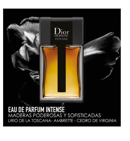 DIOR Homme Intense, la nobleza extrema y la sofisticación de una Eau de parfum amplia y poderosa. Entre singularidad y sensualidad decidida, DIOR Homme Intense se desvela como una fragancia amaderada ambarina con una fragancia sofisticada, que combina la elegancia sensual del lirio con los acentos almizclados y afrutados del almizcle ambreta de Ecuador. El lirio intenso, sublimado por una faceta ambarina y una nota de fondo amaderada, desprende su poderoso encanto. Una fragancia carnal, como una llamada