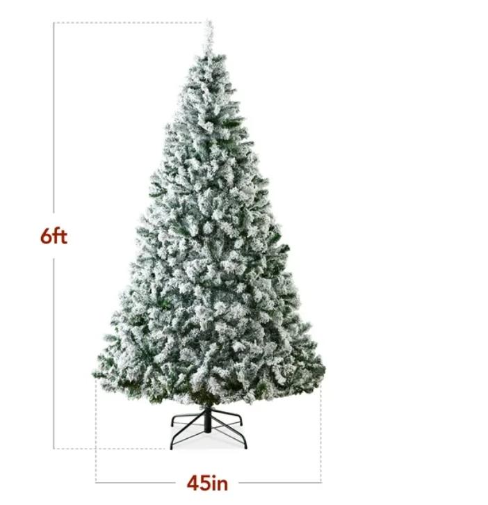 Especificaciones: Dimensiones totales: 45 pulgadas (diámetro) x 73 pulgadas (alto) (incluido el soporte) Peso: 17,4 libras. Material: PVC Tiempo de pelusa: aproximadamente 30 a 45 minutos. Requiere ensamblaje ignífugo (con instrucciones) El paquete incluye: árbol de Navidad, soporte plegable solo para uso residencial BCP SKU: SKY4227, ELEGANTE DISEÑO CUBIERTO DE NIEVE: vive una Navidad blanca, ya que las agujas de pino de PVC de color verde vibrante se realzan a la perfección con un acabado cubierto de nieve, ¡transformando tu hogar u oficina en un paraíso invernal! - DISEÑO SIN ILUMINACIÓN: reúne a la familia y crea tu propia estética navideña, ya que este árbol ofrece un lienzo en blanco para que brillen tus luces, guirnaldas y adornos favoritos