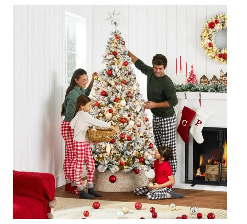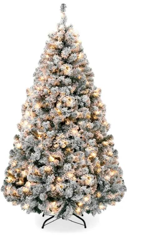 Especificaciones: Dimensiones totales: 45 pulgadas (diámetro) x 73 pulgadas (alto) (incluido el soporte) Peso: 19,16 libras. Material: PVC Tiempo de pelusa: aproximadamente 30 a 45 minutos Luces: 250 incandescentes; desmontables; bombillas reemplazables (no incluidas) Nota: si se apaga una luz, también se apagarán el resto de las luces de la misma cadena de luces. Hay varias cadenas de luces en el árbol. Requiere montaje ignífugo (con instrucciones). El paquete incluye: lámpara de pie plegable con forma de árbol de Navidad, solo para uso residencial. Código BCP: SKY5088. ELEGANTE DISEÑO CUBIERTO DE NIEVE: vive una Navidad blanca, ya que las agujas de pino de PVC de color verde vibrante se realzan maravillosamente con un acabado cubierto de nieve, transformando el espacio de tu hogar u oficina en un paraíso invernal. - TOTALMENTE ILUMINADO: cientos de puntas de ramas meticulosamente elaboradas están adornadas con docenas de luces incandescentes de color blanco cálido para crear un ambie