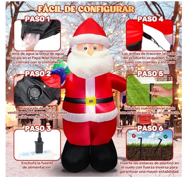 ❥ FÁCIL DE USAR ⇒ Ventilador incorporado, siempre y cuando se conecte la fuente de alimentación, el gran papá Noel inflable se puede inflar completamente en un minuto, desconectar la fuente de alimentación, el papá Noel inflable se puede desinflar automáticamente.