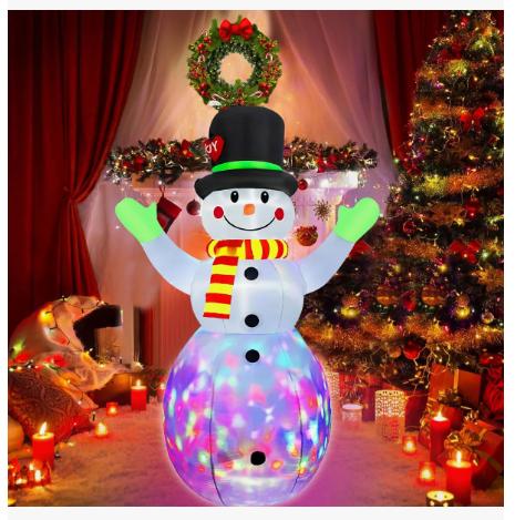 Hermosas decoraciones navideñas: este bonito muñeco de nieve inflable de Navidad de 7 pies de alto lleva un sombrero mágico y levanta sus manos con una sonrisa cálida, al igual que dar la bienvenida a los invitados. Muestra este muñeco de nieve inflable en tu patio, definitivamente atraerá su atención y los deleitará cuando tus hijos o tus invitados vengan a la puerta o jardín.