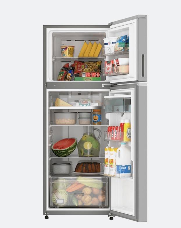 Refrigerador Top Mount con tecnología Xpert Energy Saver para un consumo eficiente de energía y 10 años de garantía en el compresor. Manejo de espacios con Xpert Spaces para mayor capacidad de almacenamiento. Cuenta con dispensador de agua exterior, fábrica de hielo portable Twist-Ice, sistema de deshielo Auto Defrost, luz LED, puerta reversible, cajón con control de humedad para preservación de frutas y verduras, anaqueles en puerta con capacidad de galón y cajón Cold Space para carnes frías.