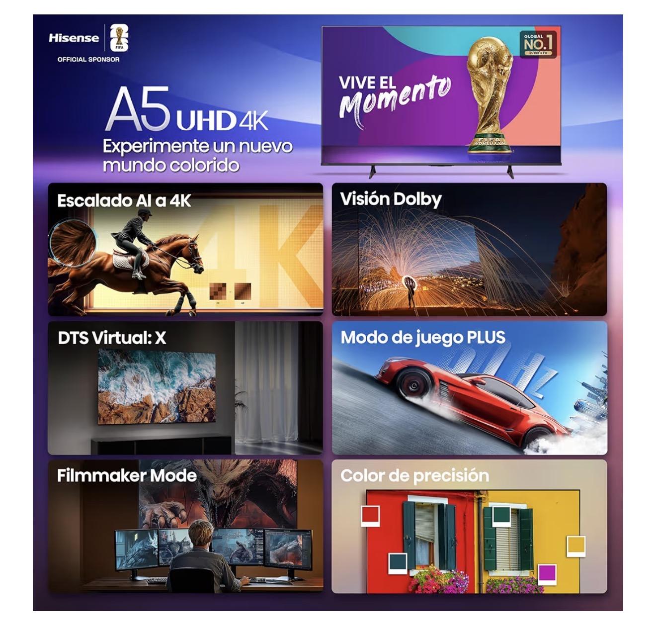 Escalado IA a 4K】El Escalado IA a 4K de Hisense desbloquea una claridad superior para todo tu contenido favorito.