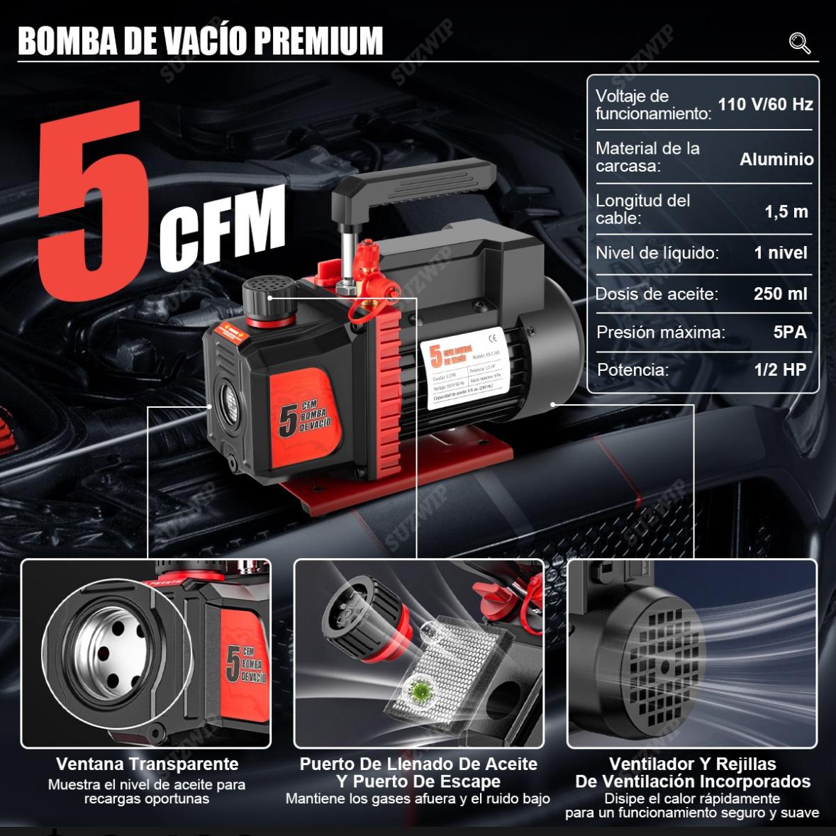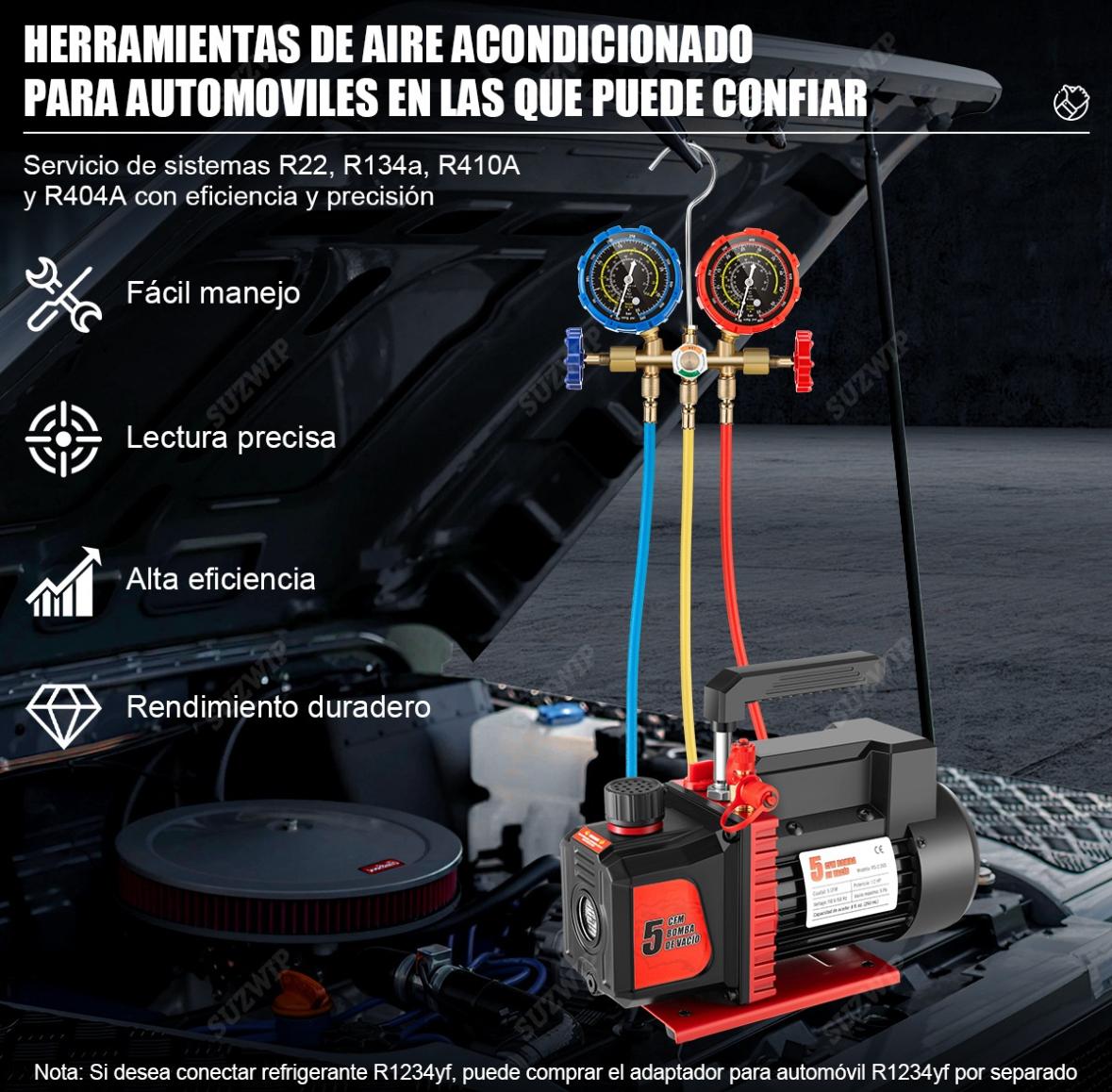 Bomba De Vacío 1/2hp 5cfm+kit Manómetro R134a R22 R410a R404