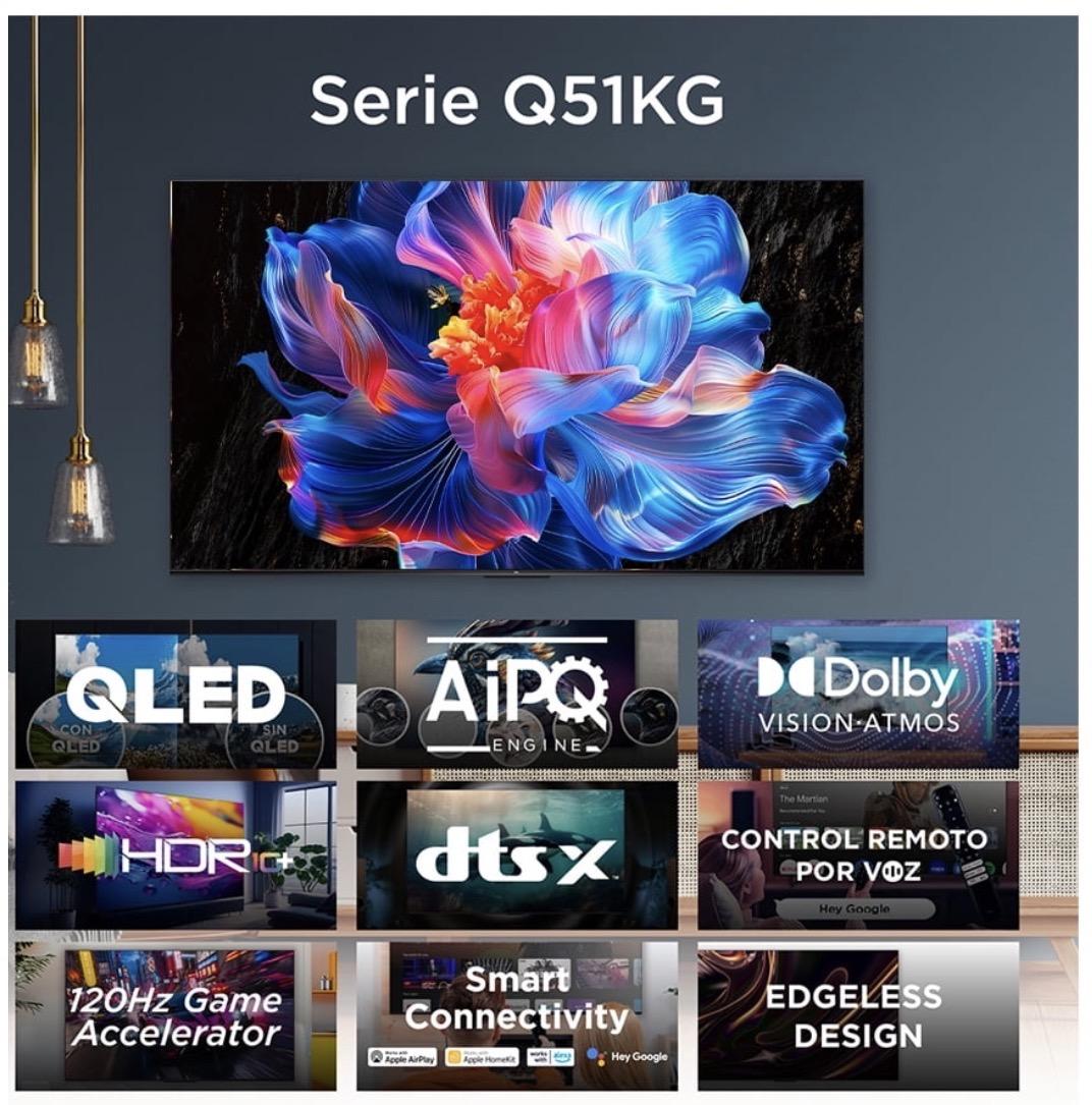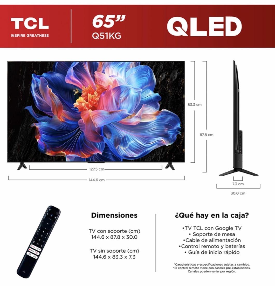La tecnología de esta pantalla es QLED Pro, donde a través de millones de Nano cristales genera miles de millones de colores para crear imágenes reales, vibrantes e impresionantes, así tus contenidos como películas, series, deportes o video juegos te harán sentir como si estuvieras ahí. Somos compatibles con los asistentes de voz mas populares del mercado como: Alexa, Google, Apple, Home Kit etc. Con la App de Google puedes editar y agregar nuevos canales a tu TCL Google TV, conectar tus audífonos a tu celular para escuchar tus programas favoritos y disfrutar del contenido de miles de canales y aplicaciones, además, con Dolby Digital Plus mejora la experiencia auditiva y cuando veas tus películas favoritas te sientas como en el cine.