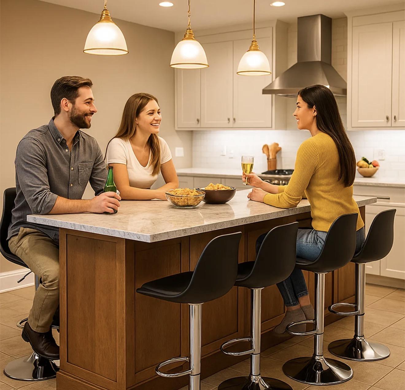 Imagina disfrutar de tus comidas o bebidas favoritas en la barra de tu cocina o bar con la comodidad y el estilo que te ofrece la Silla de Bar Giratoria con Reposapiés y Respaldo Medio de JOLBIRD.