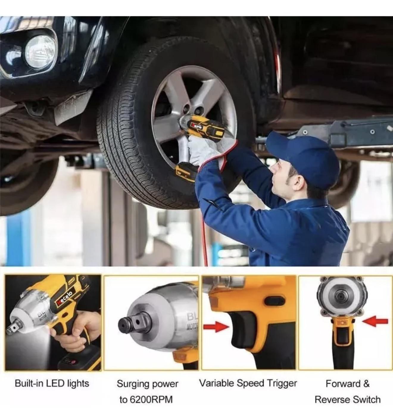 El controlador de impacto inalámbrico cuenta con un enorme torque 990n.m y velocidades de hasta 4200rpm, facilitando la eliminación de tuercas y pernos oxidados o difíciles. Ideal para mejoras en el hogar, proyectos de construcción, mantenimiento de equipos industriales o reparaciones de motocicletas.